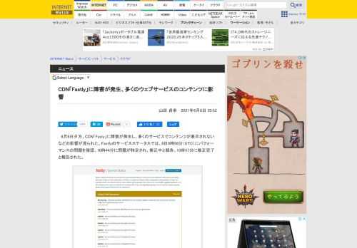 CDN「Fastly」に障害が発生、多くのウェブサービスのコンテンツに影響 - INTERNET Watch