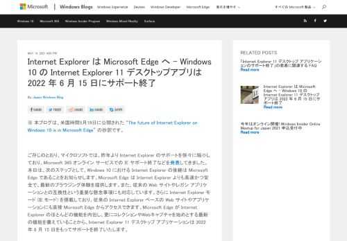 Internet Explorer は Microsoft Edge へ – Windows 10 の Internet Explorer 11 デスクトップアプリは 2022 年 6 月 15 日にサポート終了 - Windows Blog for …