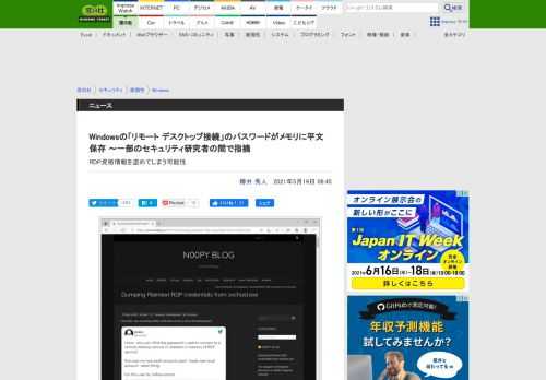 Windowsの「リモート デスクトップ接続」のパスワードがメモリに平文保存 ~一部のセキュリティ研究者の間で指摘 - 窓の杜
