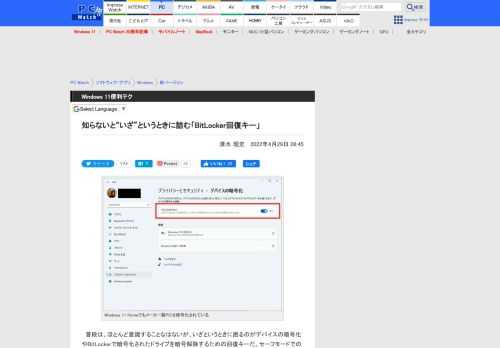 【Windows 11便利テク】知らないと“いざ”というときに詰む「BitLocker回復キー」 - PC Watch