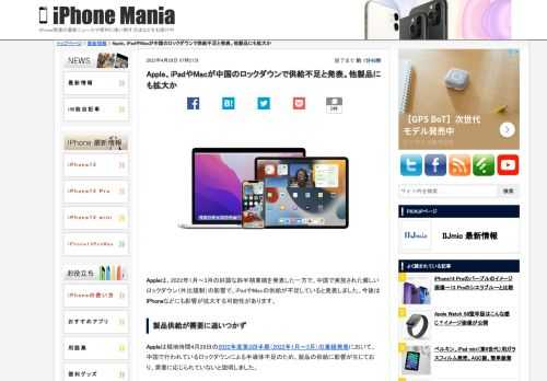 Apple、iPadやMacが中国のロックダウンで供給不足と発表。他製品にも拡大か - iPhone Mania