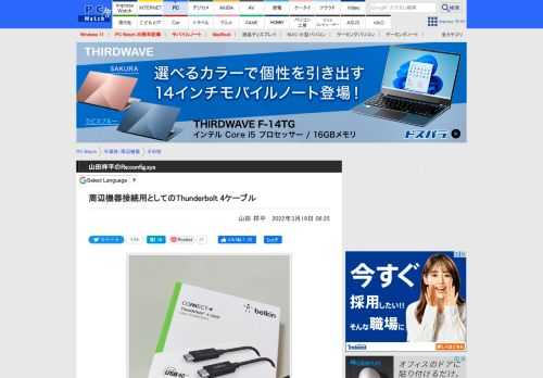 【山田祥平のRe:config.sys】周辺機器接続用としてのThunderbolt 4ケーブル - PC Watch