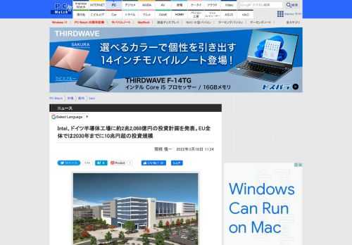 Intel、ドイツ半導体工場に約2兆2,068億円の投資計画を発表。EU全体では2030年までに10兆円超の投資規模 - PC Watch