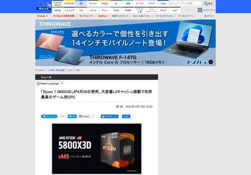 「Ryzen 7 5800X3D」が4月20日発売。大容量L3キャッシュ搭載で世界最高のゲーム用CPU - PC Watch