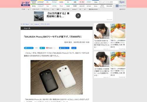 「BALMUDA Phone」SIMフリーモデルが値下げ、7万8000円に - ケータイ Watch