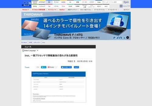 Intel、一部プロセッサで情報漏洩の恐れがある脆弱性 - PC Watch