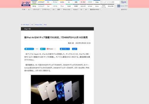新iPad AirはM1チップ搭載で5G対応、7万4800円から3月18日発売 - ケータイ Watch