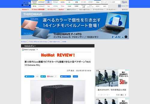 【Hothotレビュー】第12世代Core搭載でビデオカードも搭載できる小型ベアボーン「NUC 12 Extreme Kit」 - PC Watch