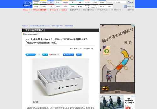 【西川和久の不定期コラム】コンパクトな筐体にCore i5-11320H、2.5GbE×2を搭載したPC「MINISFORUM EliteMini TH50」 - PC Watch