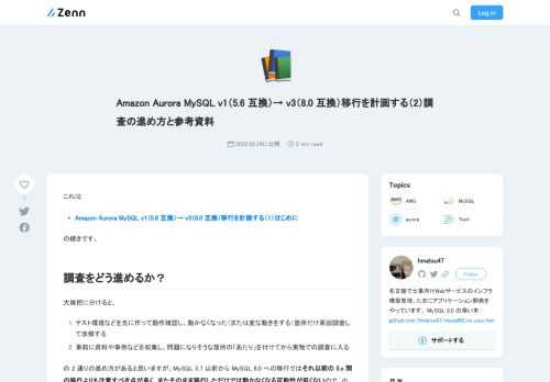 Amazon Aurora MySQL v1(5.6 互換)→ v3(8.0 互換)移行を計画する(2)調査の進め方と参考資料