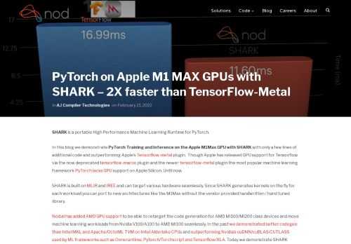 PyTorch on Apple M1 MAX GPUs with SHARK – 2X faster than TensorFlow-Metal – nod.ai