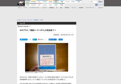 NHKプラス、「確認コードハガキ」の発送終了へ - AV Watch