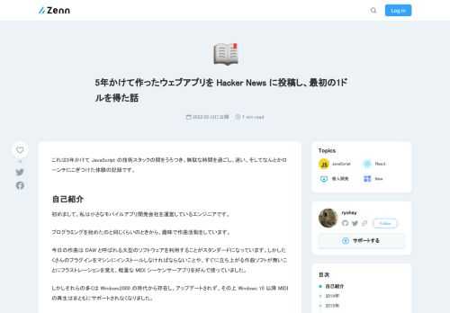 5年かけて作ったウェブアプリを Hacker News に投稿し、最初の1ドルを得た話