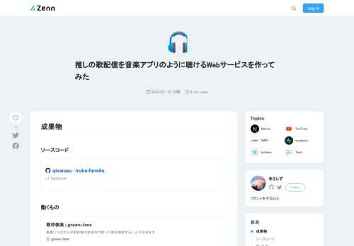 推しの歌配信を音楽アプリのように聴けるWebサービスを作ってみた