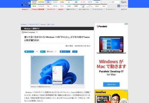 【Windows 11便利テク】使ってる? 分かりにくいWindows 11の「チャット」。ビジネス向けTeamsと何が違うのか - PC Watch