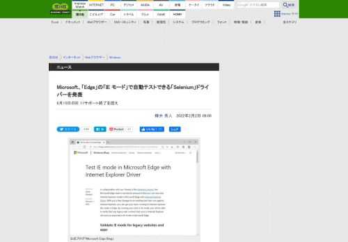 Microsoft、「Edge」の「IE モード」で自動テストできる「Selenium」ドライバーを発表 - 窓の杜