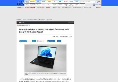 軽い・頑丈・高性能の10万円切りノートが誕生。「iiyama キャンパスPC」はすべての人にオススメだ - PC Watch[Sponsored]
