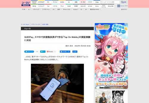 QUICPay、スマホで非接触決済ができる「Tap On Mobile」の実証実験に対応 - ケータイ Watch