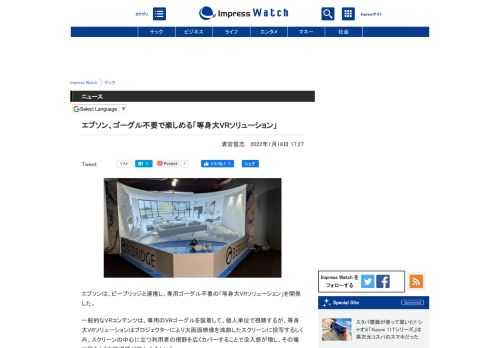 エプソン、ゴーグル不要で楽しめる「等身大VRソリューション」 - Impress Watch
