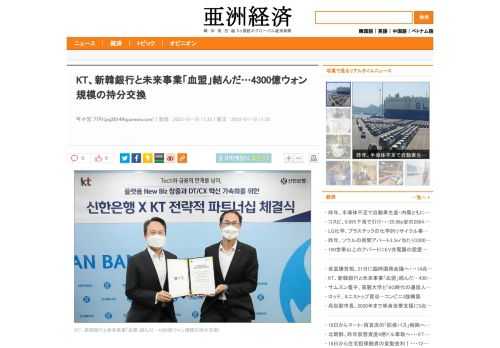 KT、新韓銀行と未来事業「血盟」結んだ…4300億ウォン規模の持分交換