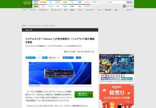 システムモニター「thilmera 7」が完全無料化 ~シェアウェア版の機能を解放 - 窓の杜