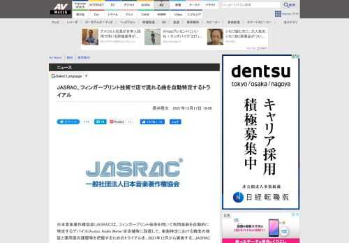 JASRAC、フィンガープリント技術で店で流れる曲を自動特定するトライアル - AV Watch