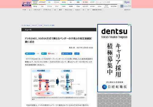 ドコモとNEC、5GのSA方式で異なるベンダーの子局との相互接続試験に成功 - ケータイ Watch