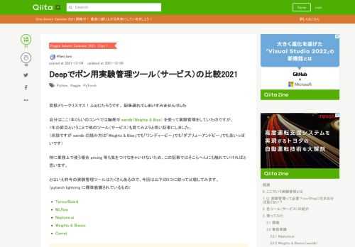 Deepでポン用実験管理ツール(サービス)の比較2021 - Qiita