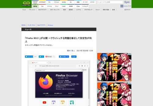 「Firefox 90.0.1」が公開 ~クラッシュする問題を修正して安定性が向上 - 窓の杜