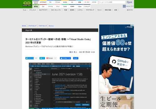 ターミナルをエディター領域へ作成・移動 ~「Visual Studio Code」2021年6月更新 - 窓の杜