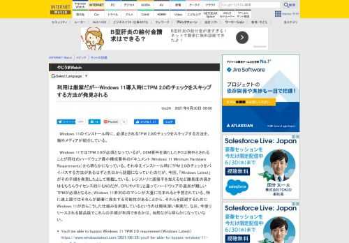 利用は厳禁だが…Windows 11導入時にTPM 2.0のチェックをスキップする方法が発見される【やじうまWatch】 - INTERNET Watch