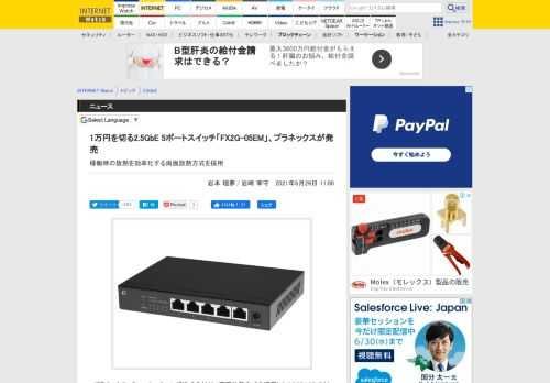 1万円を切る2.5GbE 5ポートスイッチ「FX2G-05EM」、プラネックスが発売 - INTERNET Watch