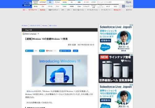 【速報】Windows 10の後継Windows 11発表 - PC Watch