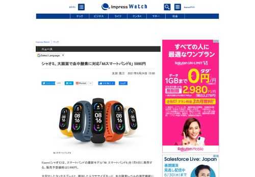 シャオミ、大画面で血中酸素に対応「Miスマートバンド6」 5990円 - Impress Watch