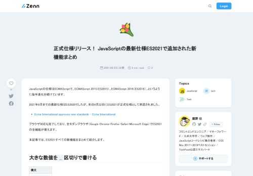 正式仕様リリース! JavaScriptの最新仕様ES2021で追加された新機能まとめ