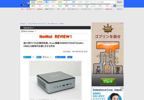 【Hothotレビュー】超小型PCでも圧倒的性能。Ryzen搭載のMINISFORUM「EliteMini HM80」は新時代を感じさせる存在 - PC Watch