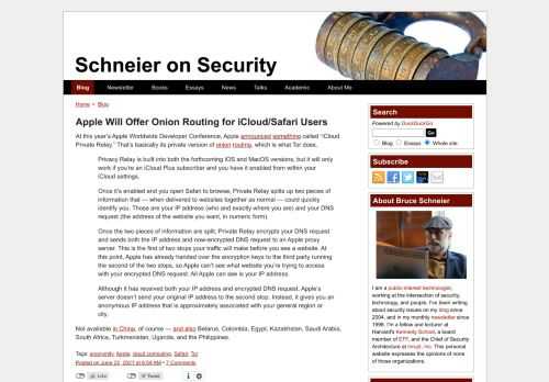 Apple Will Offer Onion Routing for iCloud/Safari Users - Schneier on Security