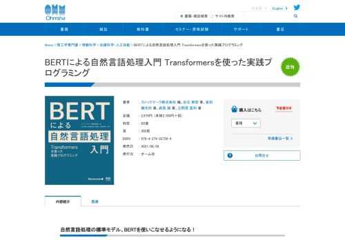 BERTによる自然言語処理入門 Transformersを使った実践プログラミング | Ohmsha