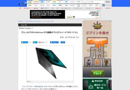 デル、8コアCPU+GeForce RTX搭載のプレミアムノート「XPS 17/15」 - PC Watch