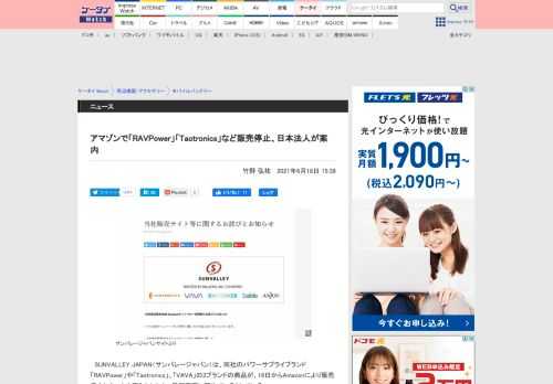 アマゾンで「RAVPower」「Taotronics」など販売停止、日本法人が案内 - ケータイ Watch