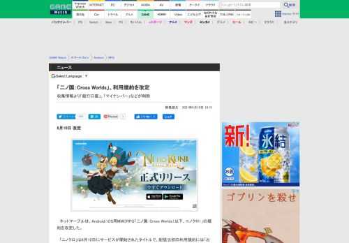 「二ノ国:Cross Worlds」、利用規約を改定 - GAME Watch