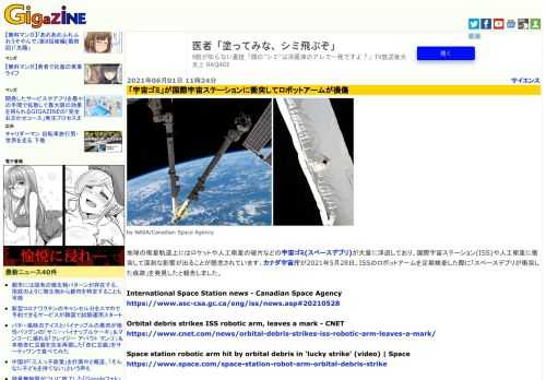「宇宙ゴミ」が国際宇宙ステーションに衝突してロボットアームが損傷