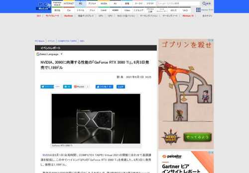 NVIDIA、3090に肉薄する性能の「GeForce RTX 3080 Ti」。6月3日発売で1,199ドル - PC Watch
