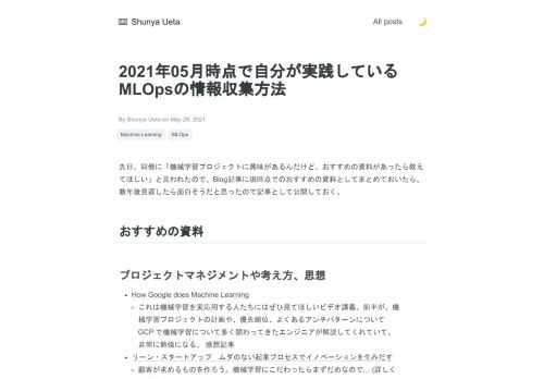 2021年05月時点で自分が実践しているMLOpsの情報収集方法 | Shunya Ueta