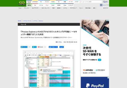 「Process Explorer」v16.4はプロセスのフィルタリングが可能に ~セキュリティ機能「CET」にも対応 - 窓の杜
