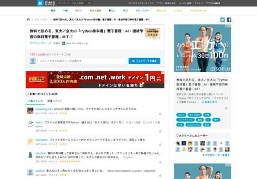 [B! python] 無料で読める、東大/京大の「Python教科書」電子書籍:AI・機械学習の無料電子書籍 - @IT
