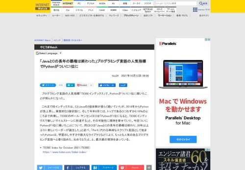 「JavaとCの長年の覇権は終わった」プログラミング言語の人気指標でPythonがついに1位に【やじうまWatch】 - INTERNET Watch