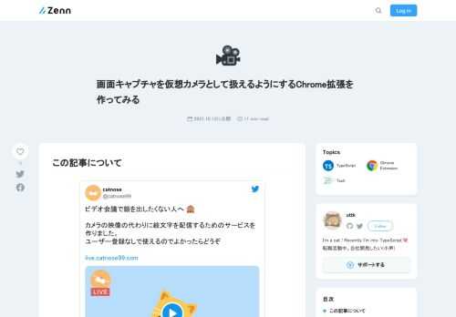 画面キャプチャを仮想カメラとして扱えるようにするChrome拡張を作ってみる