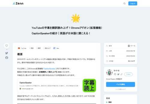 YouTubeの字幕を翻訳読み上げ!Chromeアドオン(拡張機能)CaptionSpeakerの紹介 | 英語が日本語に聞こえる!