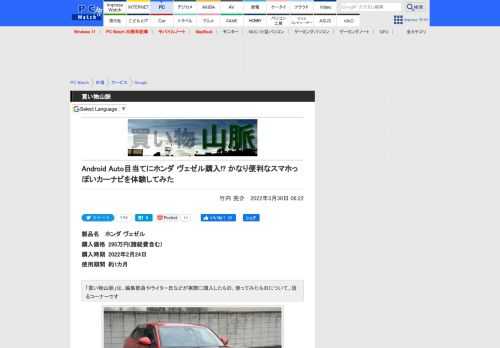 【買い物山脈】Android Auto目当てにホンダ ヴェゼル購入!? かなり便利なスマホっぽいカーナビを体験してみた - PC Watch